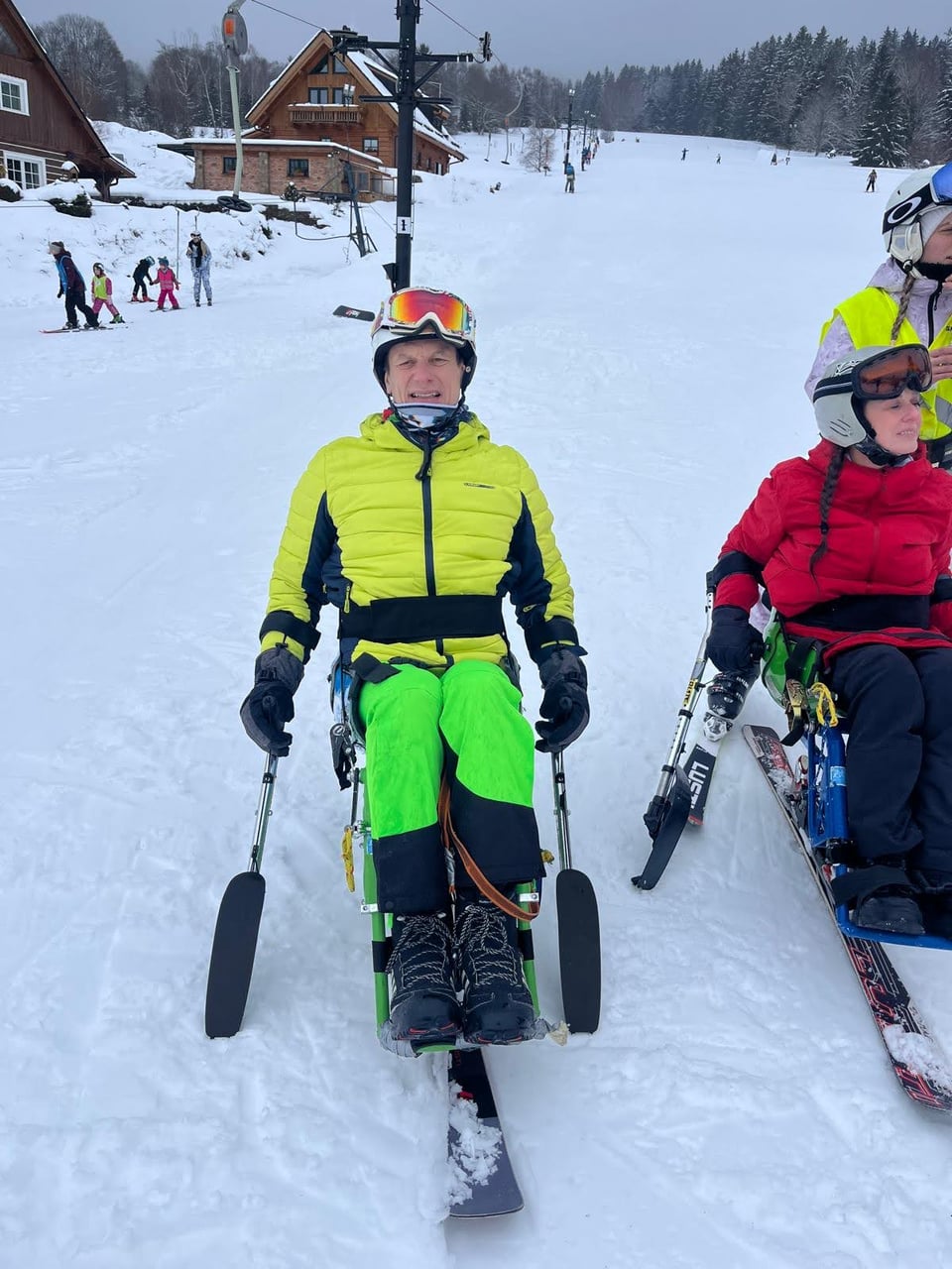 Za zmínku stojí lyžař Luboš, který se nám ozval v pátek před odjezdem do Železné Rudy. Slovo dalo slovo a Luboš se za námi přijel v sobotu podívat, aby si jako nováček monoski vyzkoušel. Díky jeho nadšení a talentu se mu podařilo ovládnout monoski za jediný den lyžování a ze svahu jsme ho museli doslova vyhnat.
