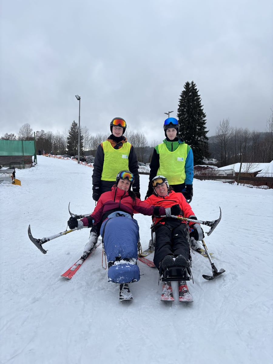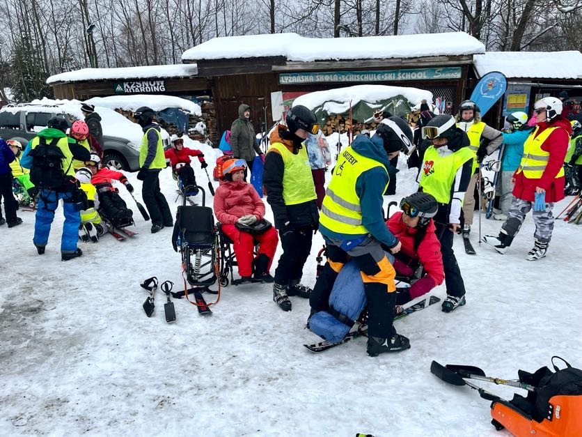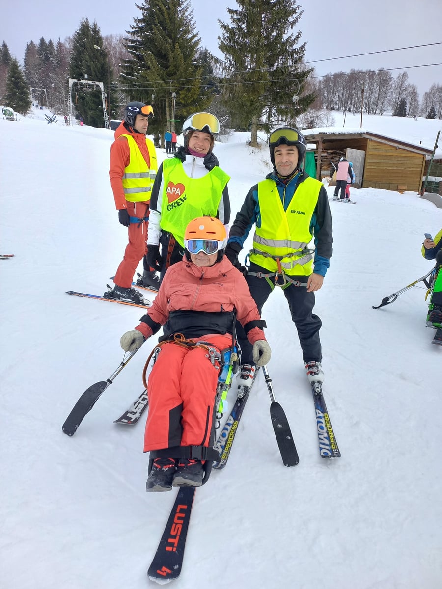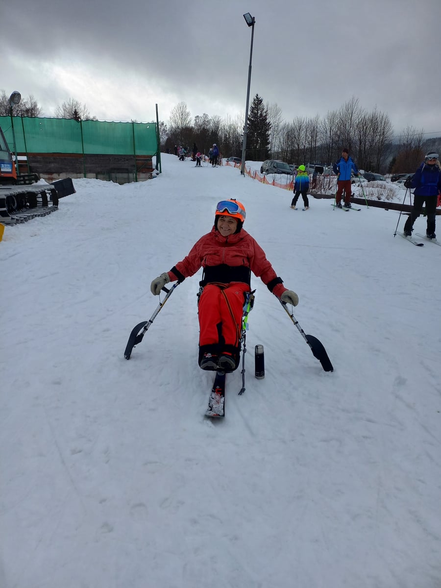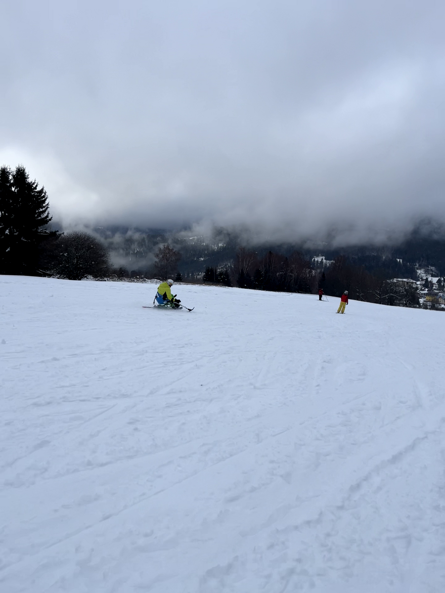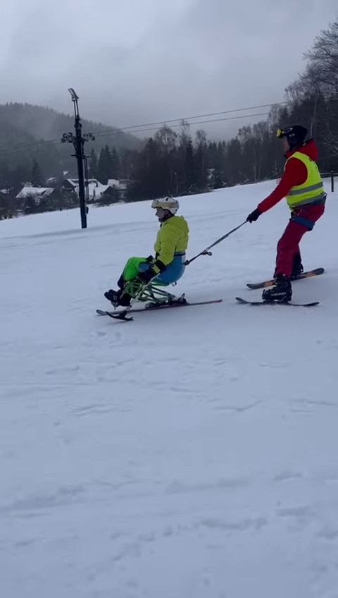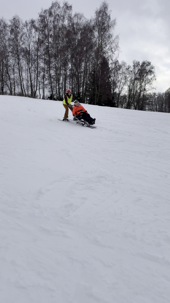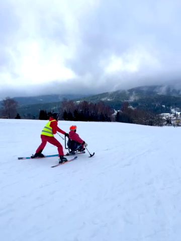 A to se také povedlo. V sobotu jsme vyrazili do skiareálu Samoty, který je coby kamenem dohodil od našeho ubytování. Našli jsme si i hezké místo na přípravu a nástup do monoski a biski. Ze začátku jsme měli trochu problém s vlekaři, kteří neměli s lyžaři na monoski žádné zkušenosti. Vyřešili jsme to za pomoci asistentky Martinky, která nás celý den trpělivě „nahazovala“´ do vleku. Počasí nám nakonec přálo, a tak jsme lyžovali skoro až do uzavření areálu.