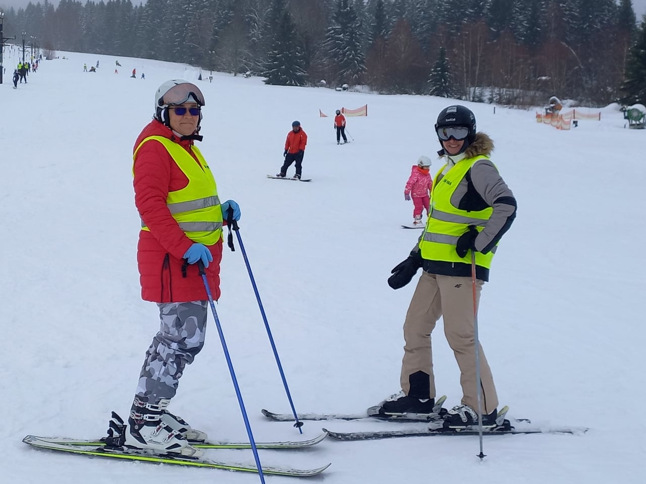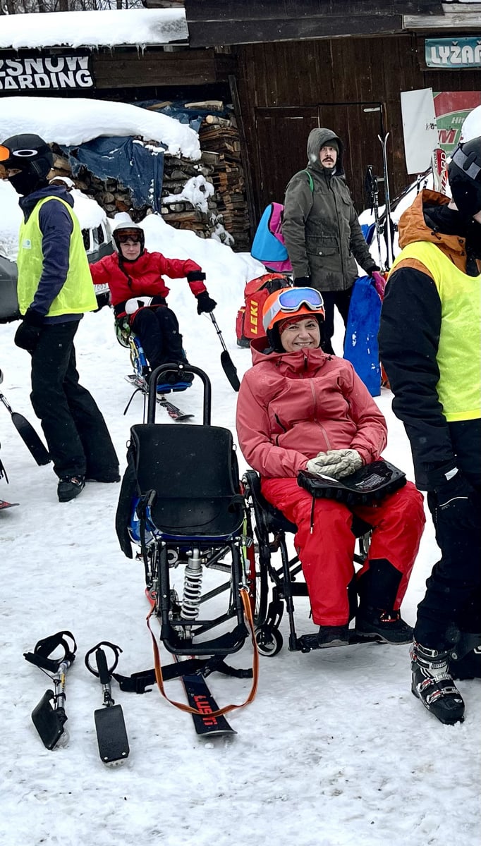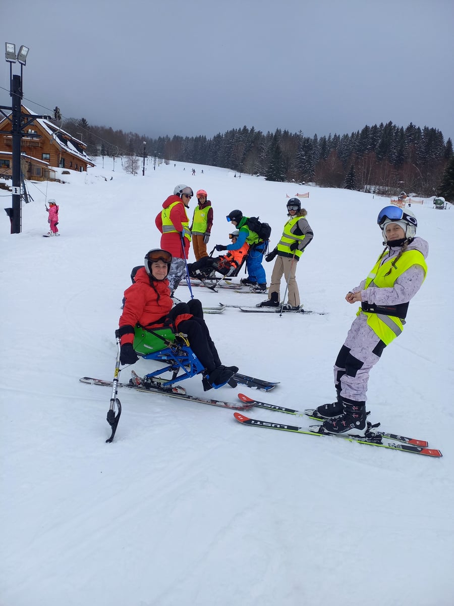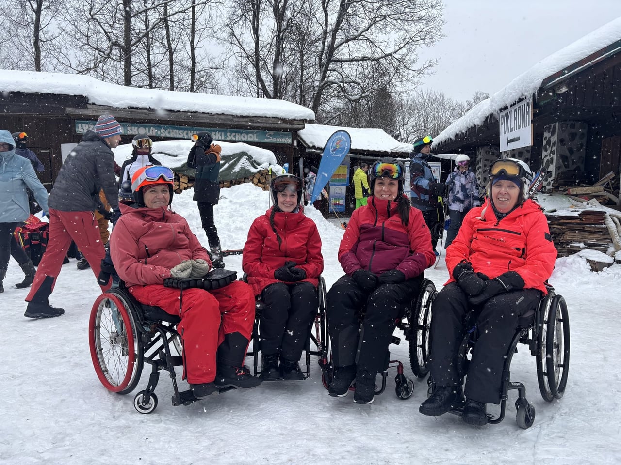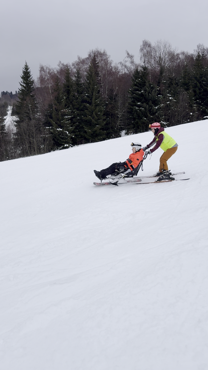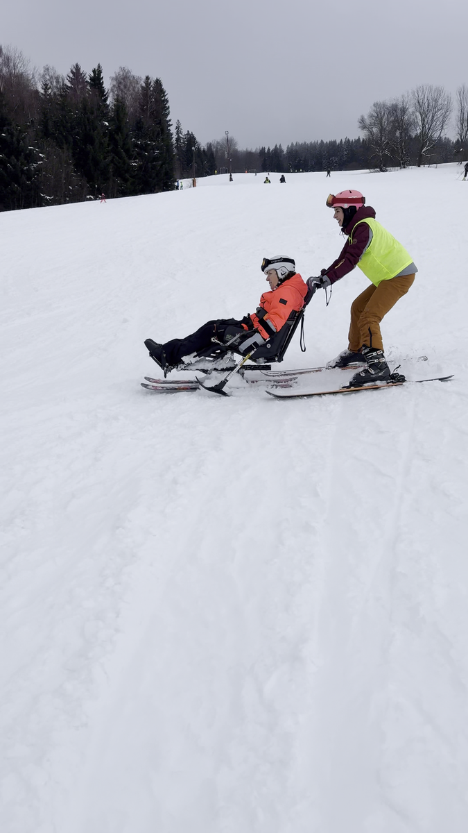 A to se také povedlo. V sobotu jsme vyrazili do skiareálu Samoty, který je coby kamenem dohodil od našeho ubytování. Našli jsme si i hezké místo na přípravu a nástup do monoski a biski. Ze začátku jsme měli trochu problém s vlekaři, kteří neměli s lyžaři na monoski žádné zkušenosti. Vyřešili jsme to za pomoci asistentky Martinky, která nás celý den trpělivě „nahazovala“´ do vleku. Počasí nám nakonec přálo, a tak jsme lyžovali skoro až do uzavření areálu.