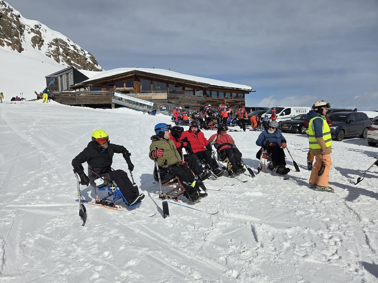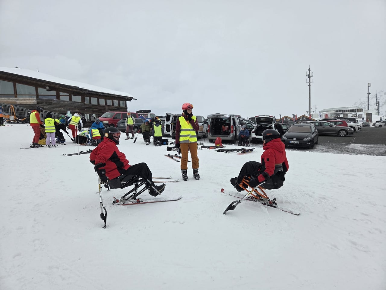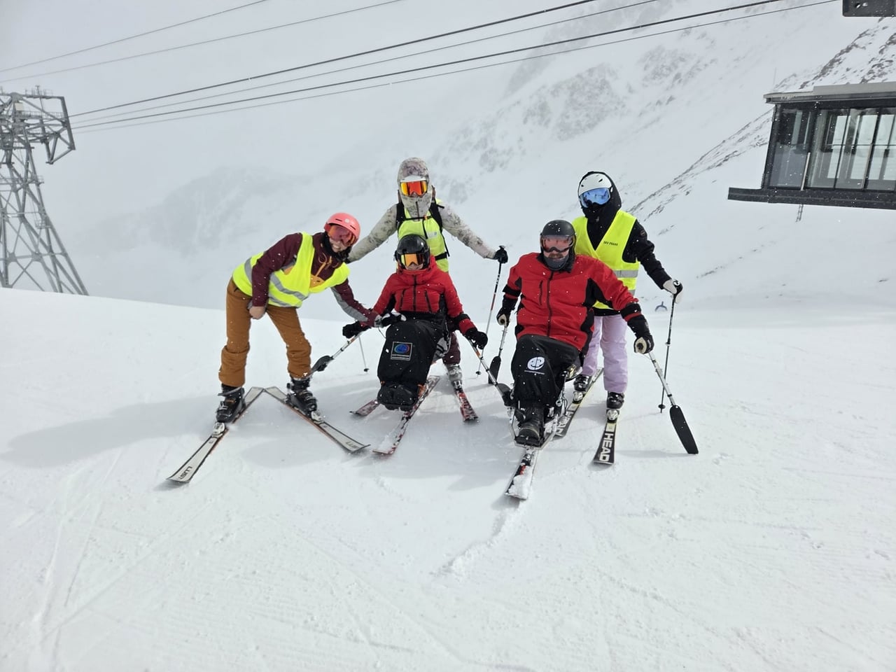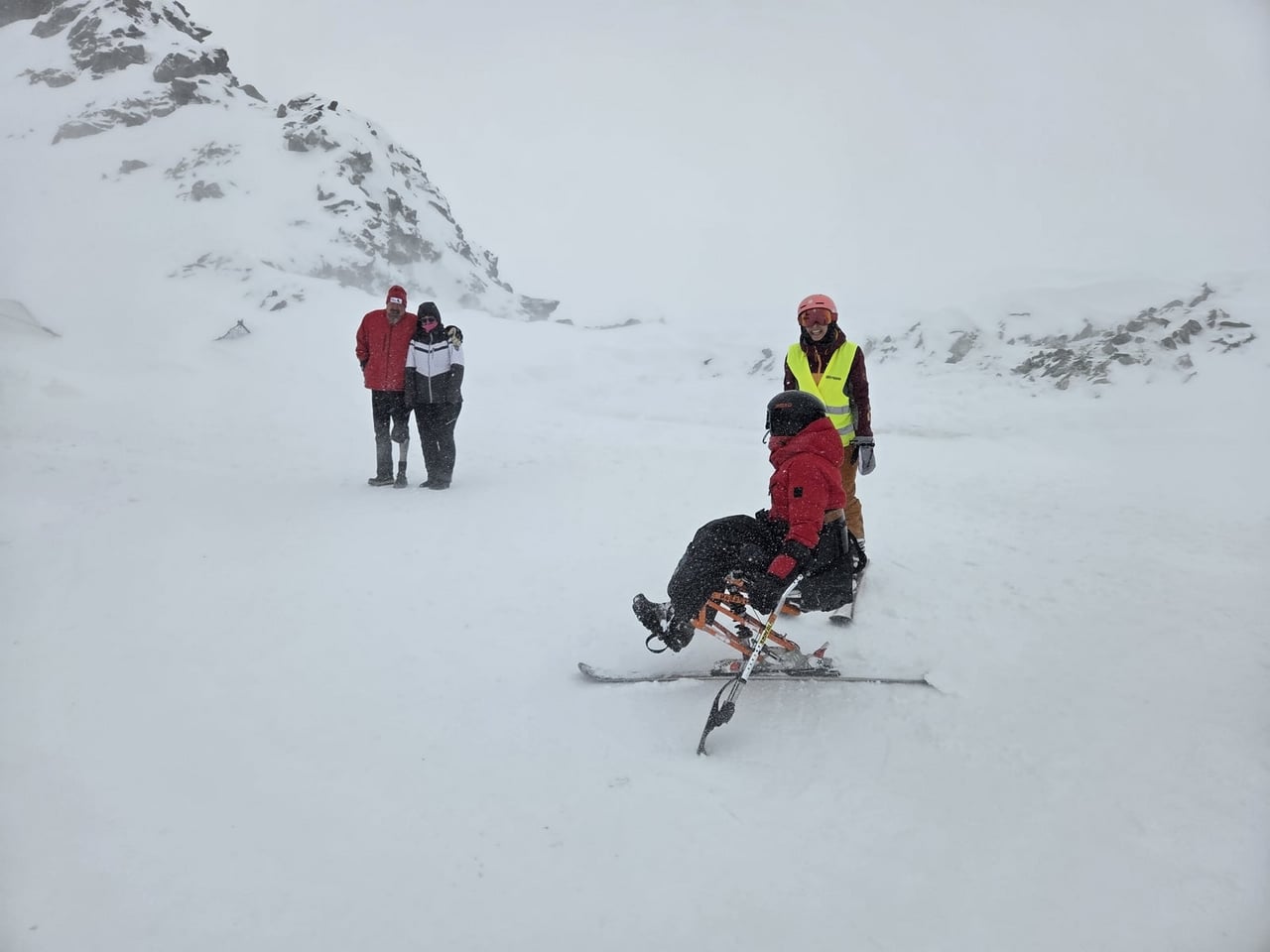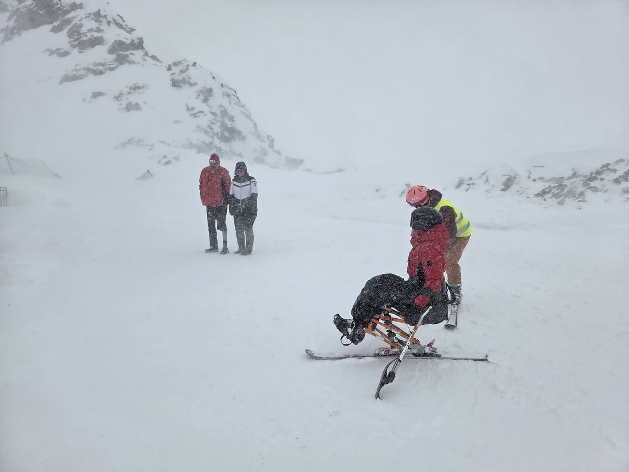 Našich osm lyžařů na monoski a premiérově i první nevidomý lyžař zahájili program v sobotu. Po pátečním slunečném dni se počasí zhoršilo, především viditelnost byla slabší, což dělalo problémy mnoha lyžařům – nejen těm handicapovaným. Difuzní (rozptýlené) světlo je na alpských svazích poměrně častým jevem. Světlo při něm dopadá ze všech směrů, nevznikají výrazné stíny a je tak obtížné rozeznat terén i okraj sjezdovky.