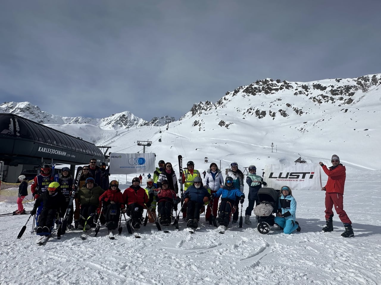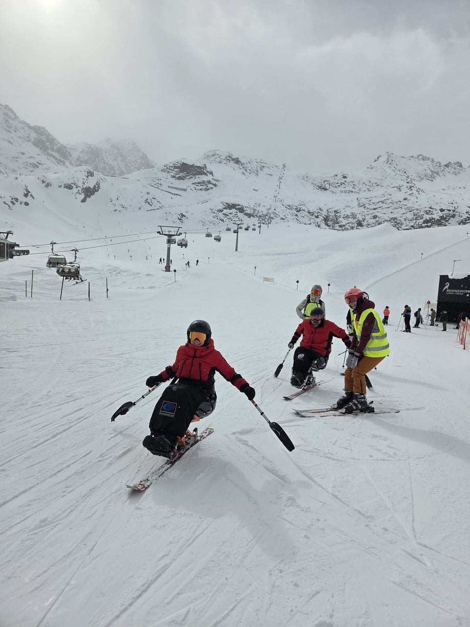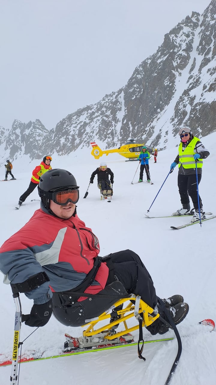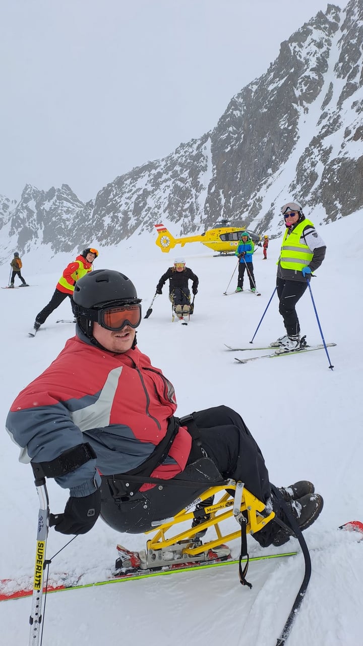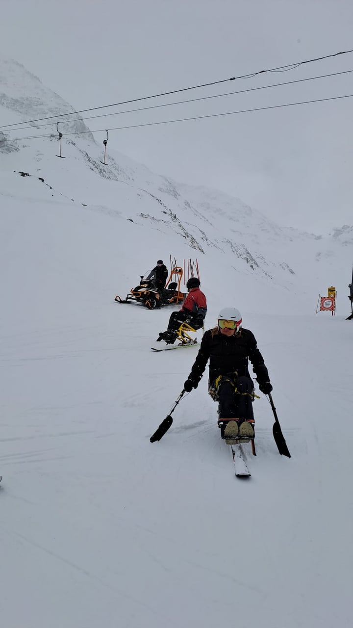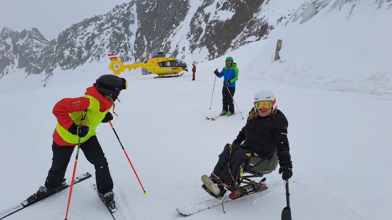 Našich osm lyžařů na monoski a premiérově i první nevidomý lyžař zahájili program v sobotu. Po pátečním slunečném dni se počasí zhoršilo, především viditelnost byla slabší, což dělalo problémy mnoha lyžařům – nejen těm handicapovaným. Difuzní (rozptýlené) světlo je na alpských svazích poměrně častým jevem. Světlo při něm dopadá ze všech směrů, nevznikají výrazné stíny a je tak obtížné rozeznat terén i okraj sjezdovky.