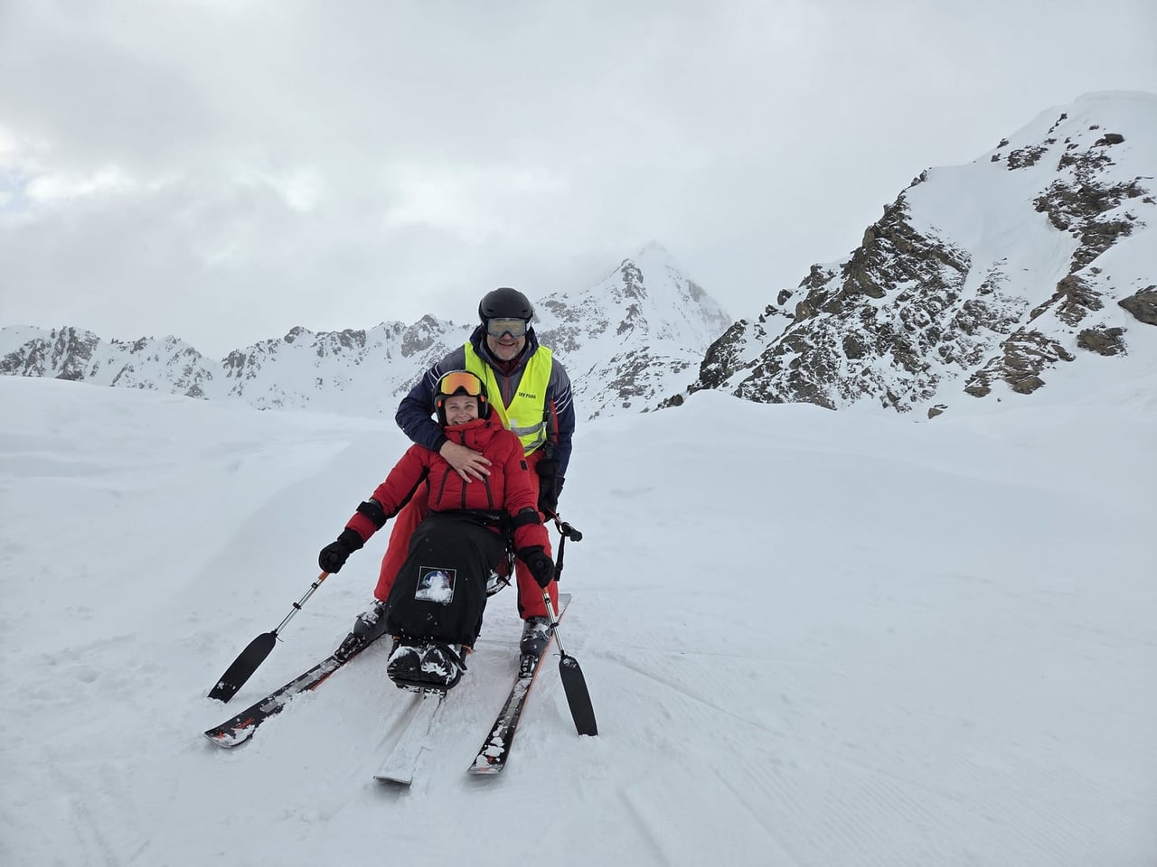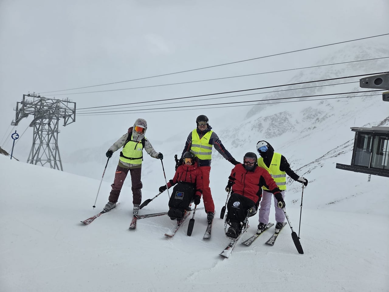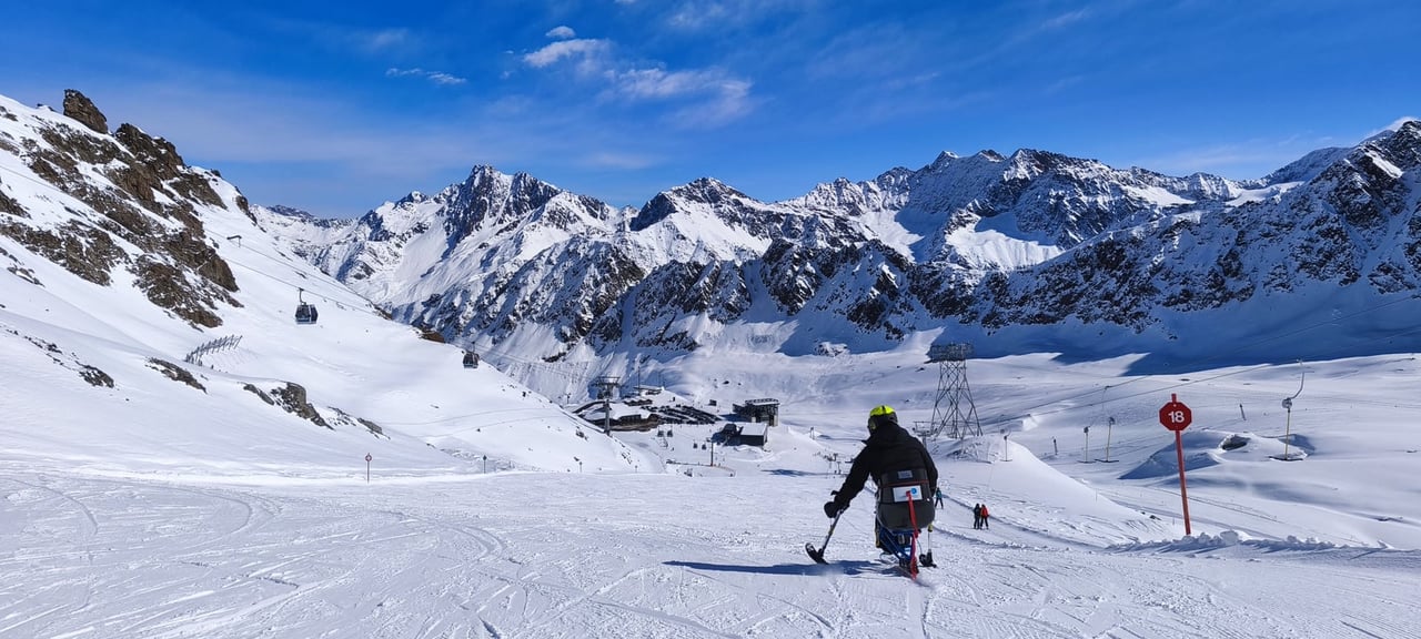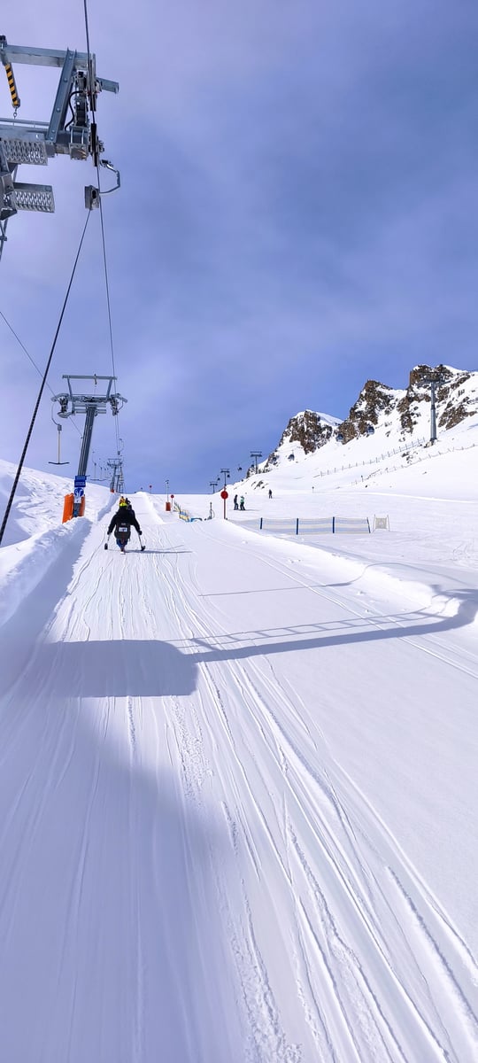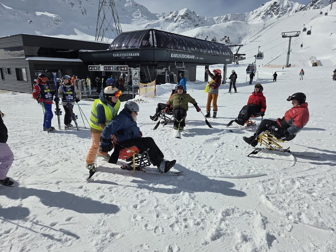 Našich osm lyžařů na monoski a premiérově i první nevidomý lyžař zahájili program v sobotu. Po pátečním slunečném dni se počasí zhoršilo, především viditelnost byla slabší, což dělalo problémy mnoha lyžařům – nejen těm handicapovaným. Difuzní (rozptýlené) světlo je na alpských svazích poměrně častým jevem. Světlo při něm dopadá ze všech směrů, nevznikají výrazné stíny a je tak obtížné rozeznat terén i okraj sjezdovky.
