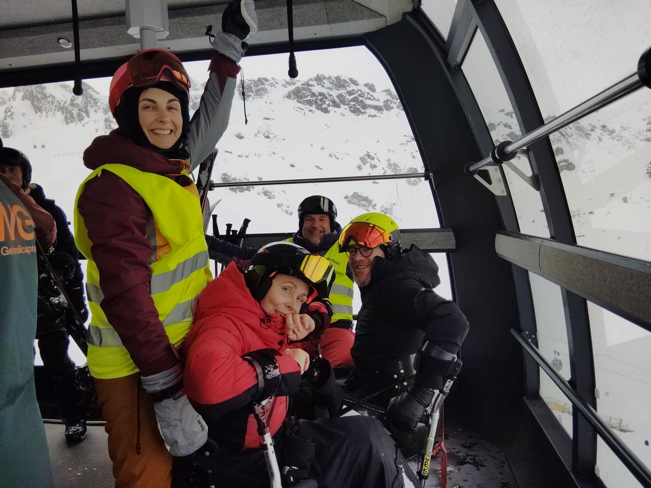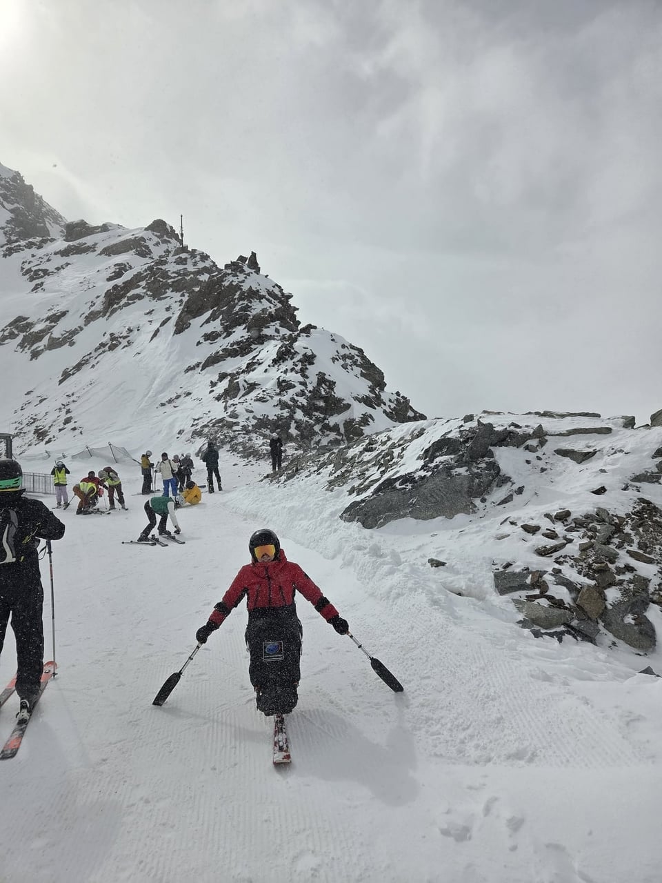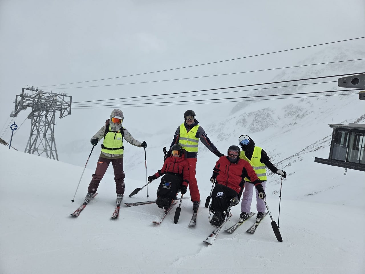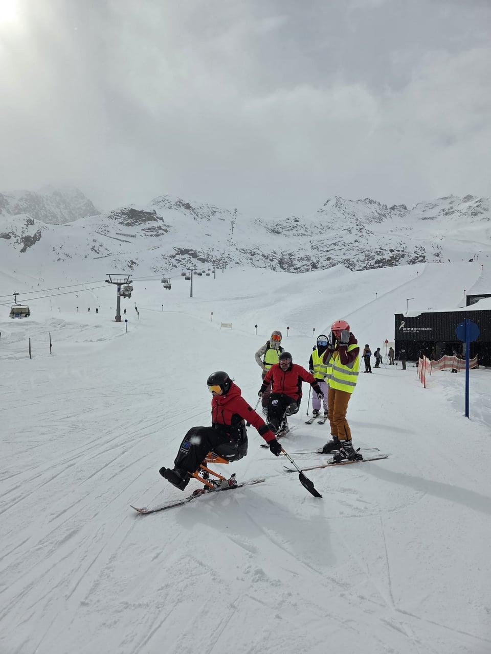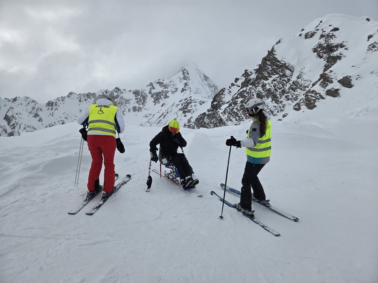 Našich osm lyžařů na monoski a premiérově i první nevidomý lyžař zahájili program v sobotu. Po pátečním slunečném dni se počasí zhoršilo, především viditelnost byla slabší, což dělalo problémy mnoha lyžařům – nejen těm handicapovaným. Difuzní (rozptýlené) světlo je na alpských svazích poměrně častým jevem. Světlo při něm dopadá ze všech směrů, nevznikají výrazné stíny a je tak obtížné rozeznat terén i okraj sjezdovky.
