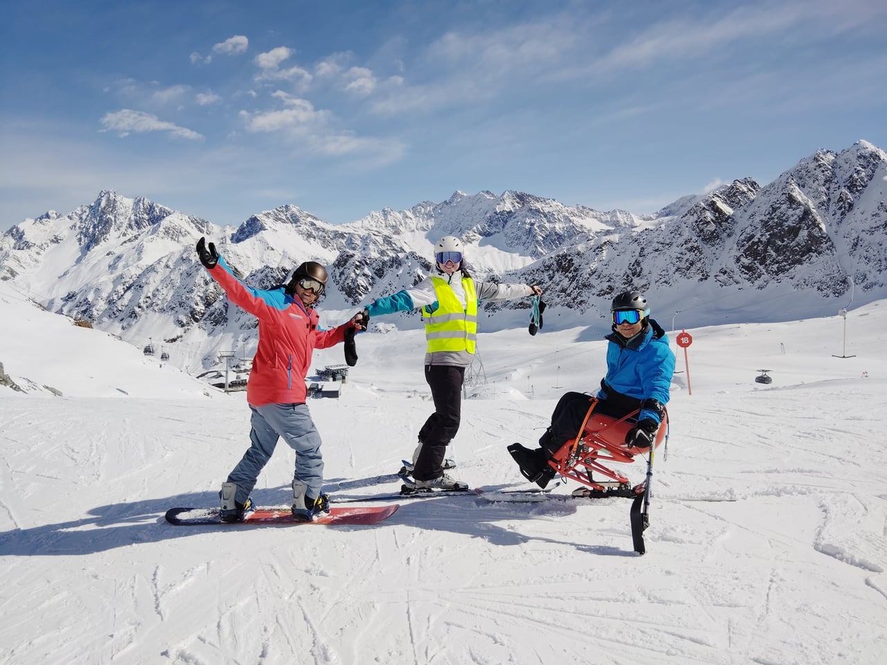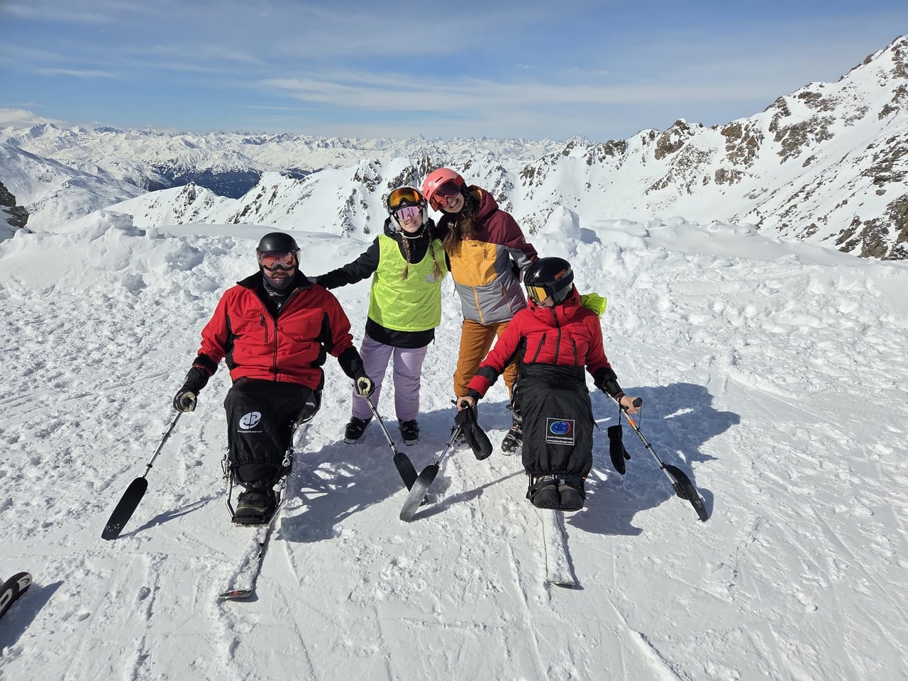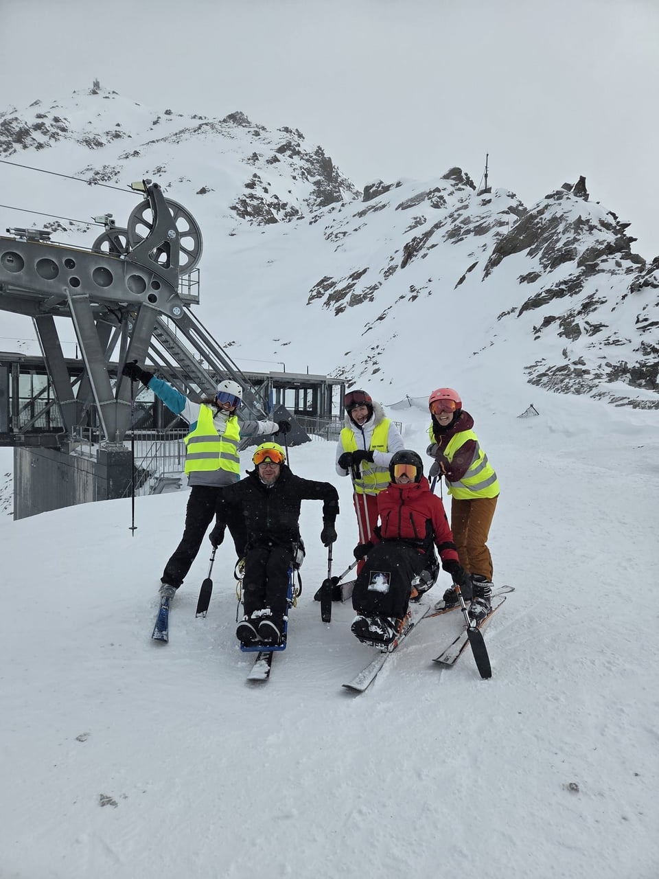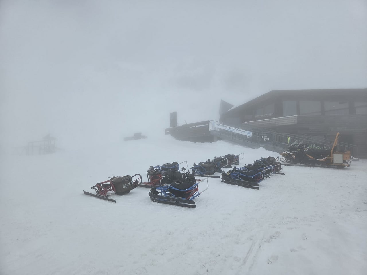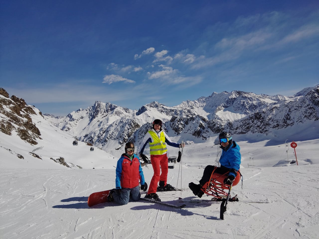 Našich osm lyžařů na monoski a premiérově i první nevidomý lyžař zahájili program v sobotu. Po pátečním slunečném dni se počasí zhoršilo, především viditelnost byla slabší, což dělalo problémy mnoha lyžařům – nejen těm handicapovaným. Difuzní (rozptýlené) světlo je na alpských svazích poměrně častým jevem. Světlo při něm dopadá ze všech směrů, nevznikají výrazné stíny a je tak obtížné rozeznat terén i okraj sjezdovky.
