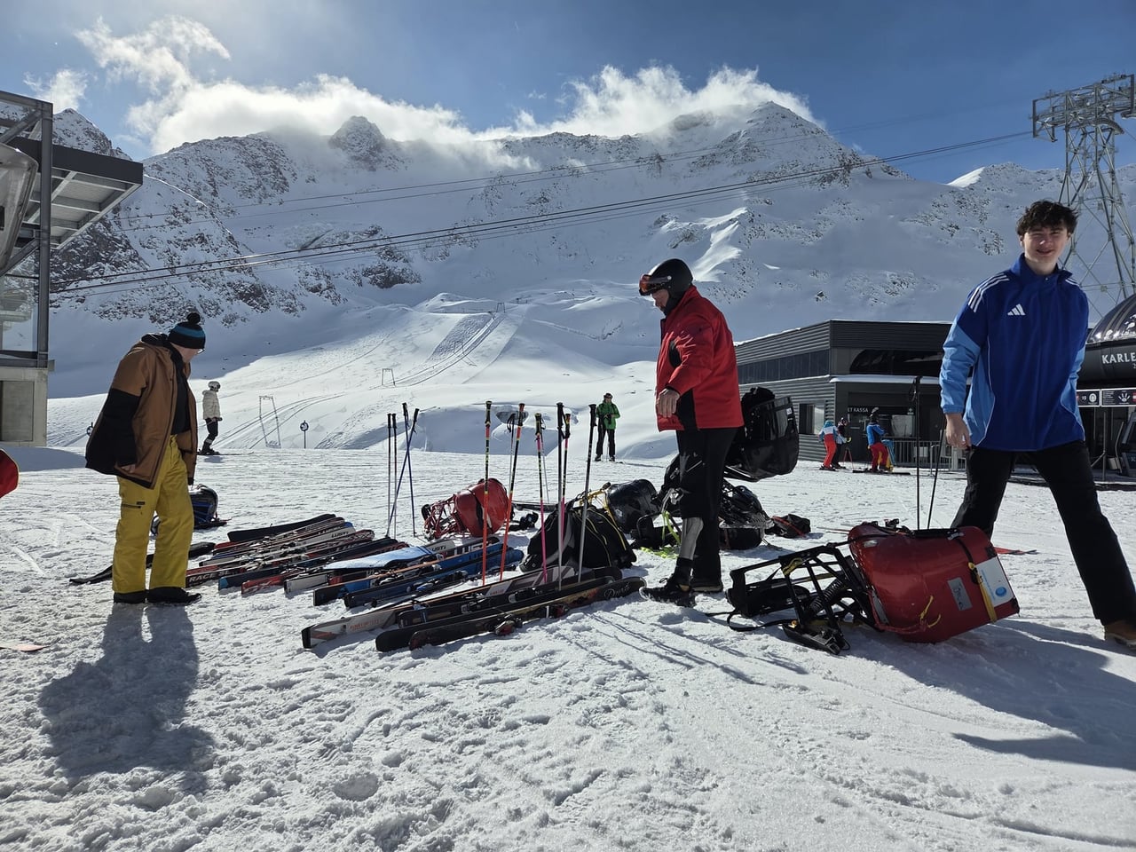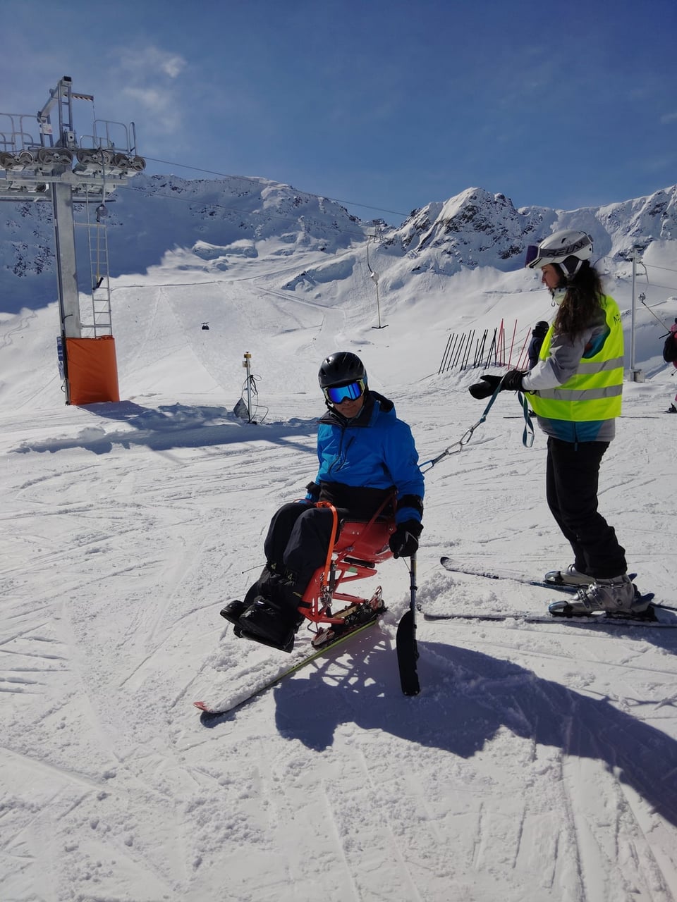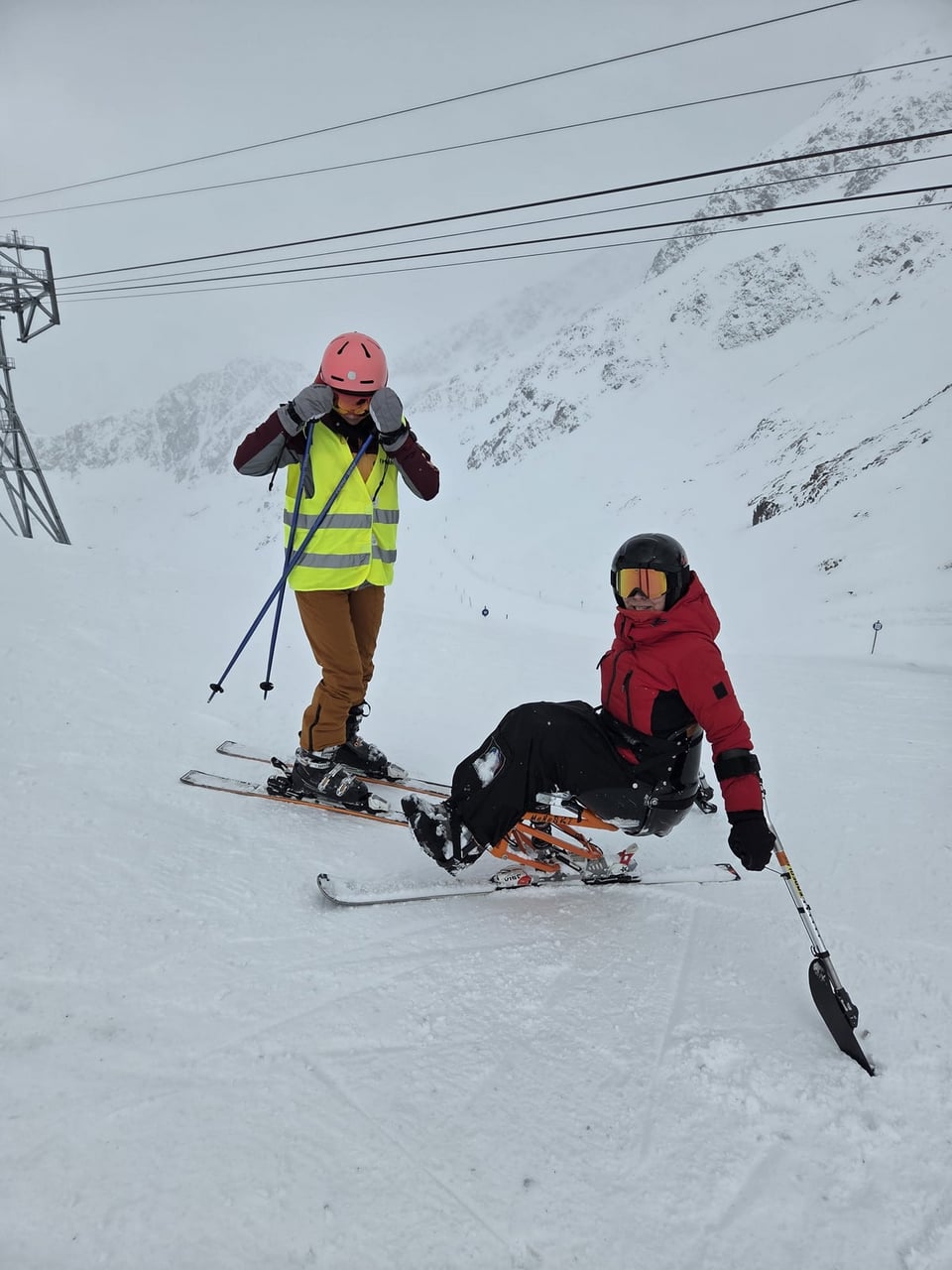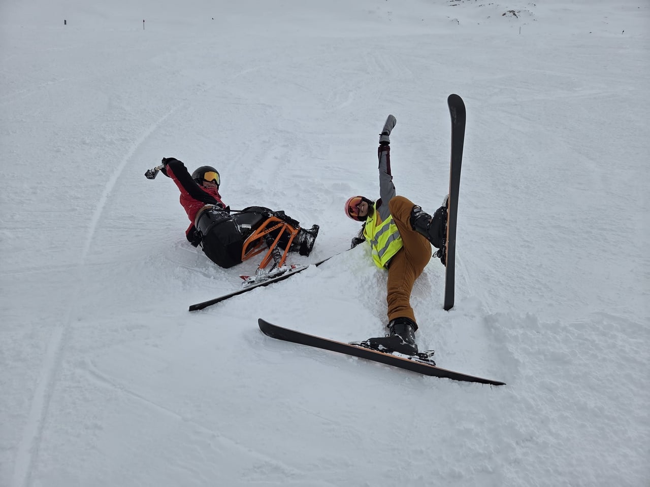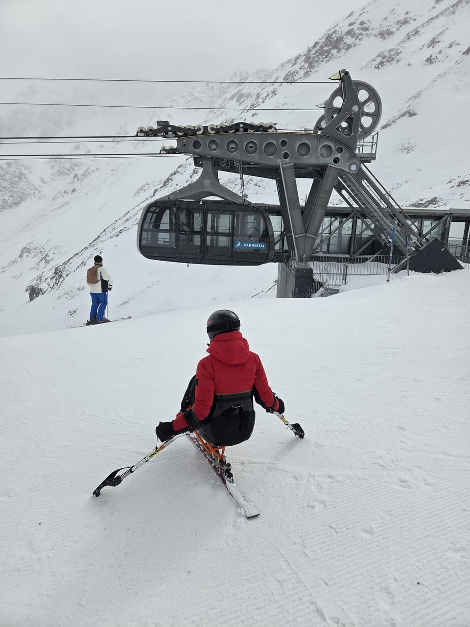 Našich osm lyžařů na monoski a premiérově i první nevidomý lyžař zahájili program v sobotu. Po pátečním slunečném dni se počasí zhoršilo, především viditelnost byla slabší, což dělalo problémy mnoha lyžařům – nejen těm handicapovaným. Difuzní (rozptýlené) světlo je na alpských svazích poměrně častým jevem. Světlo při něm dopadá ze všech směrů, nevznikají výrazné stíny a je tak obtížné rozeznat terén i okraj sjezdovky.