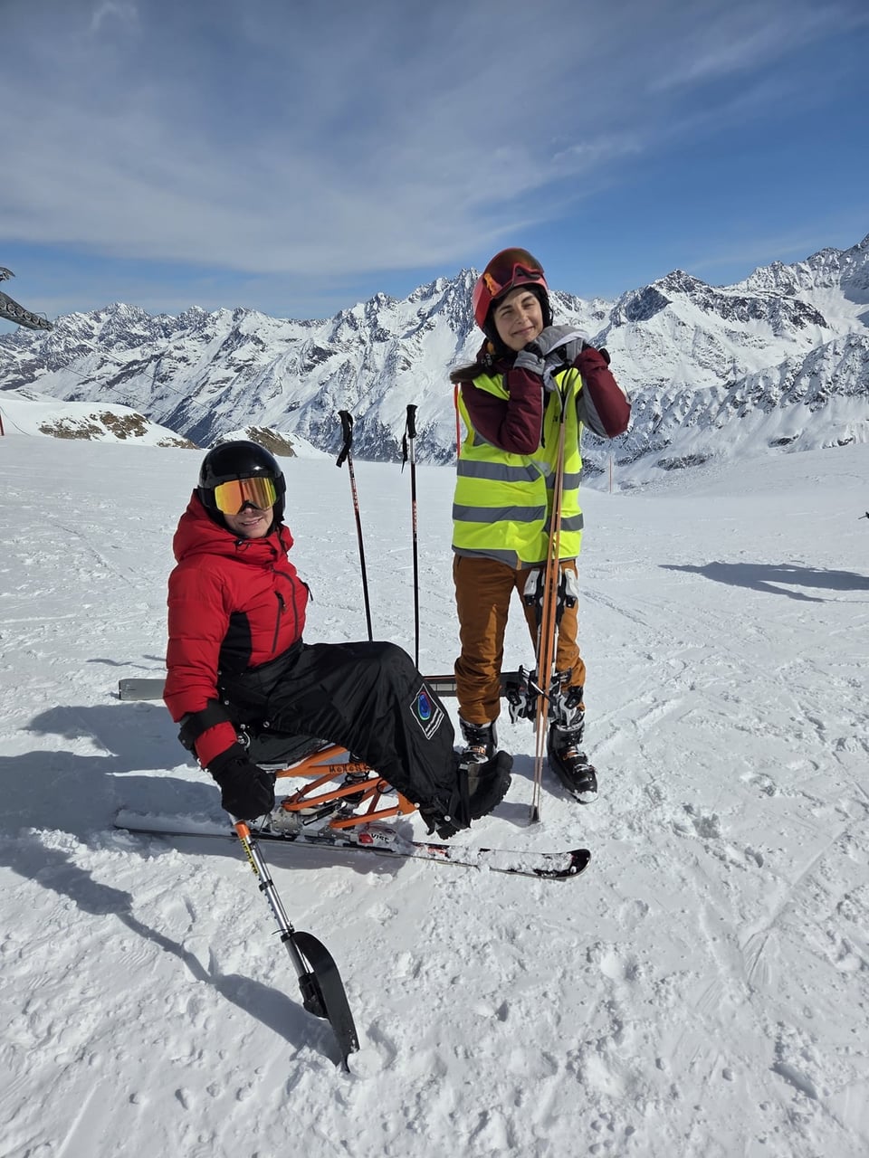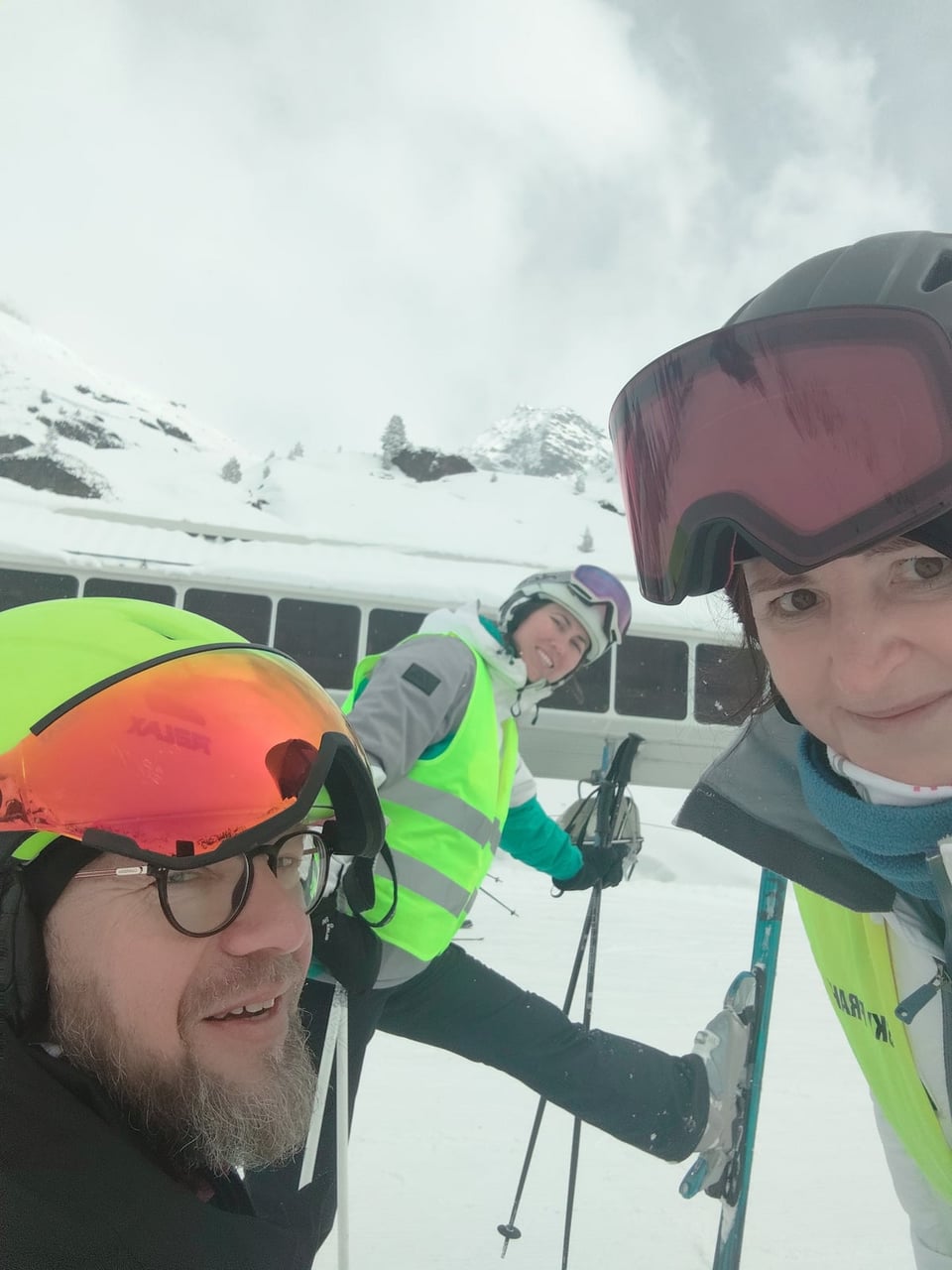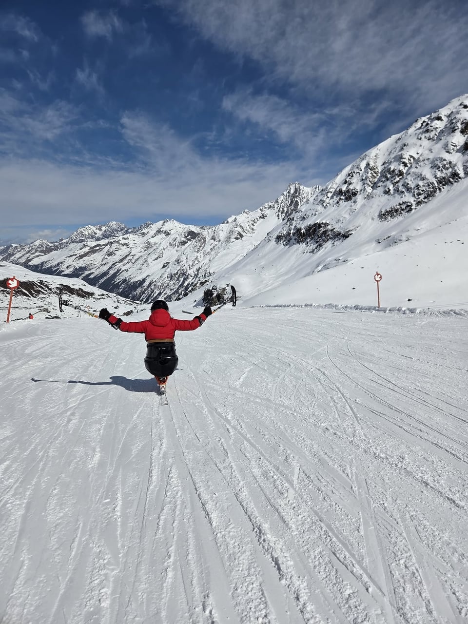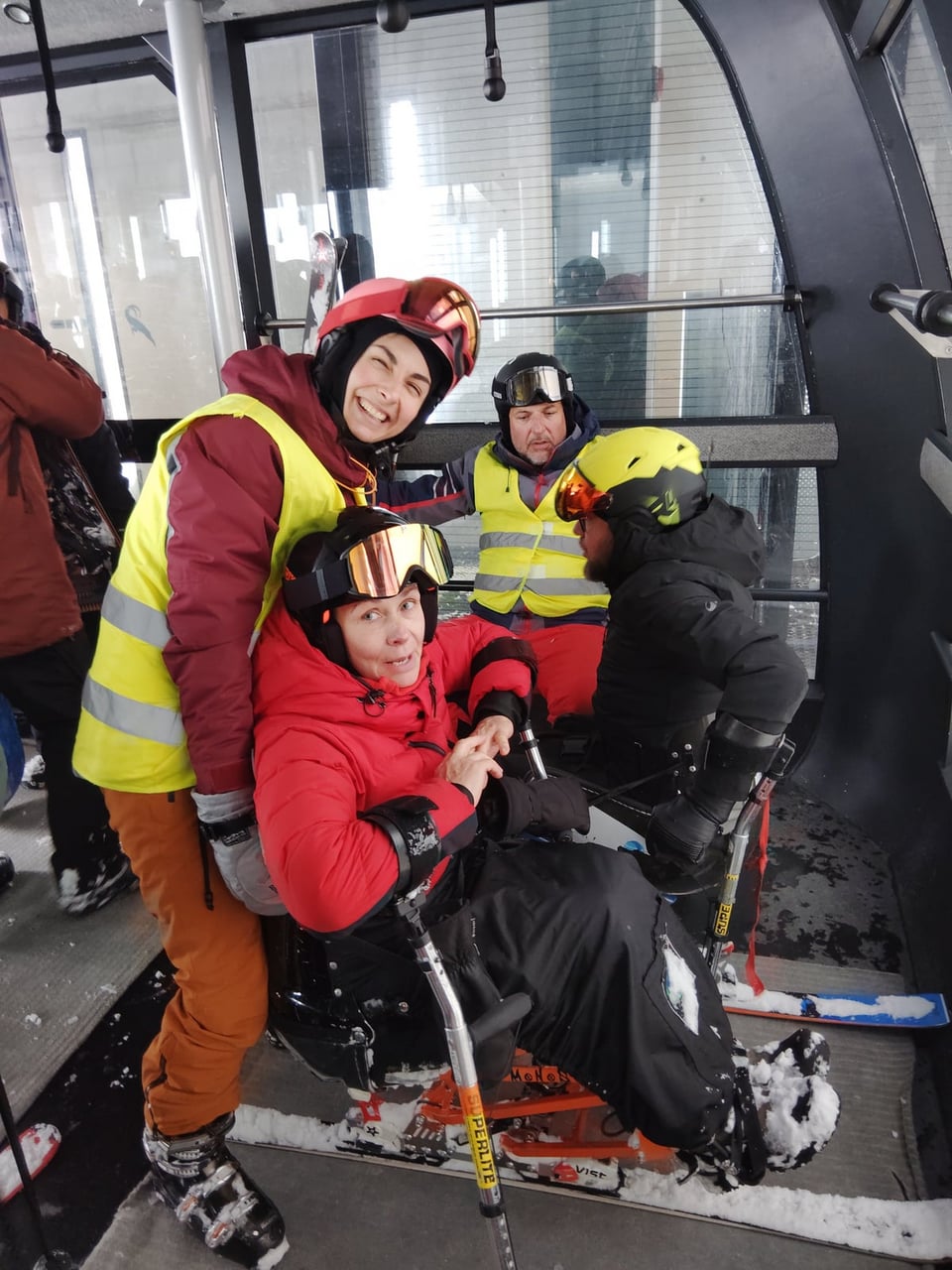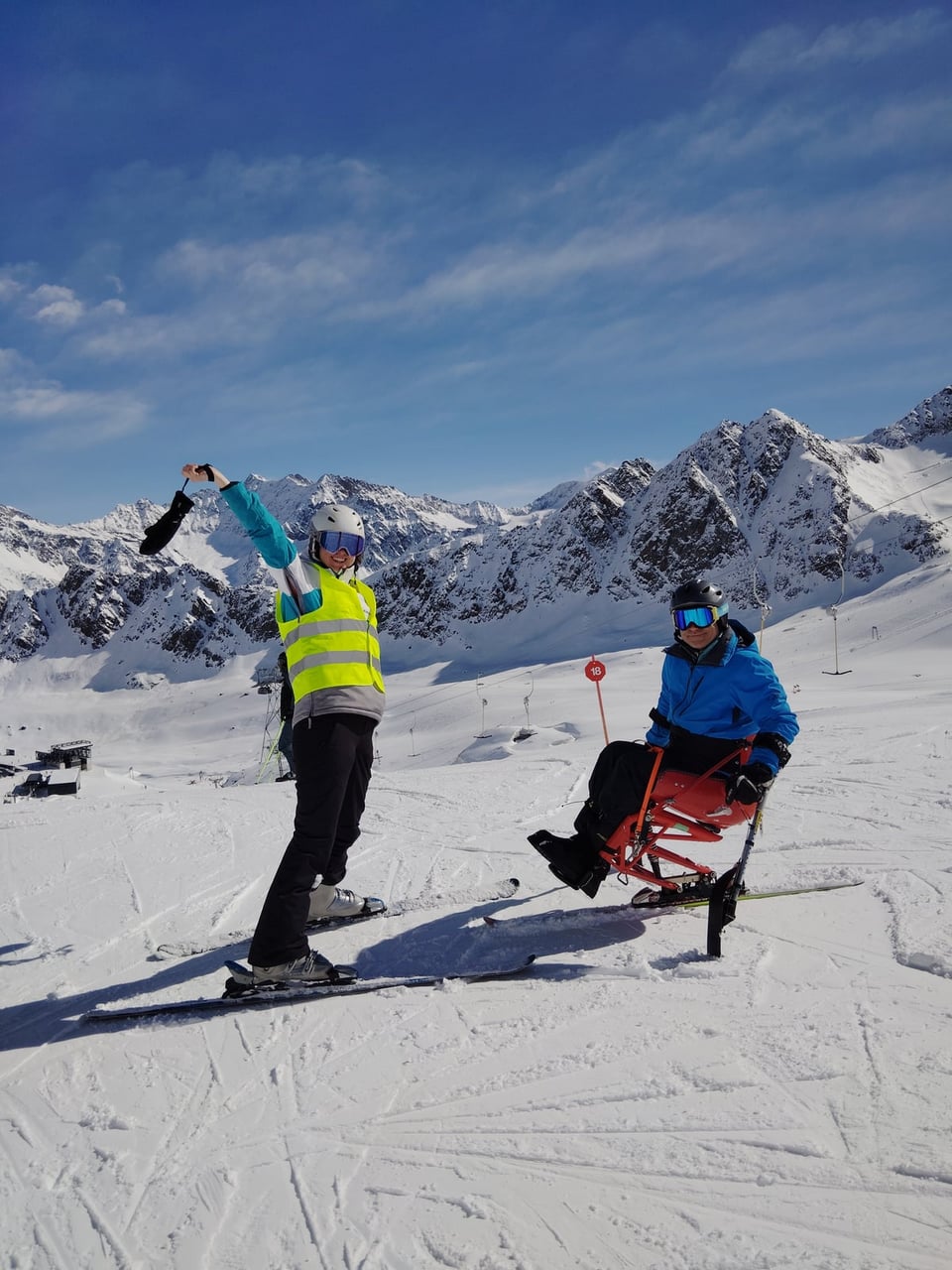Našich osm lyžařů na monoski a premiérově i první nevidomý lyžař zahájili program v sobotu. Po pátečním slunečném dni se počasí zhoršilo, především viditelnost byla slabší, což dělalo problémy mnoha lyžařům – nejen těm handicapovaným. Difuzní (rozptýlené) světlo je na alpských svazích poměrně častým jevem. Světlo při něm dopadá ze všech směrů, nevznikají výrazné stíny a je tak obtížné rozeznat terén i okraj sjezdovky.