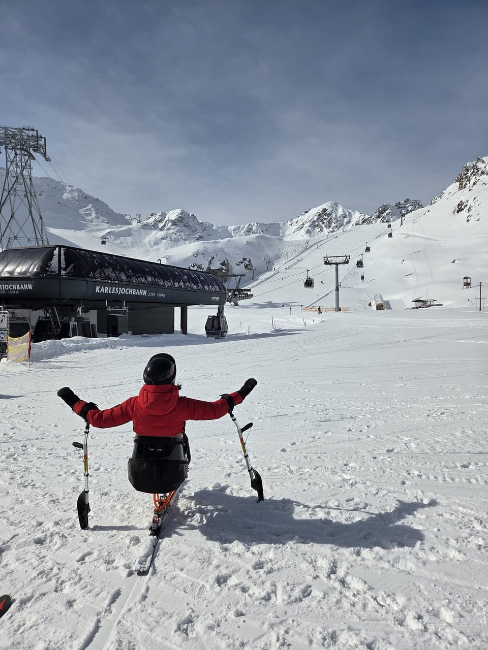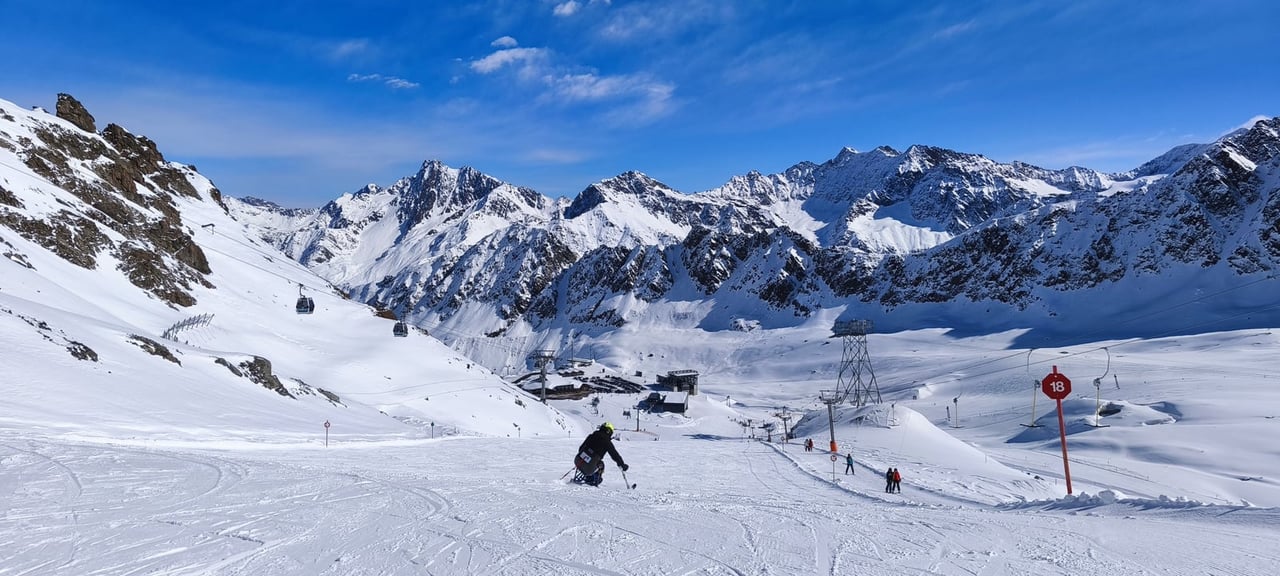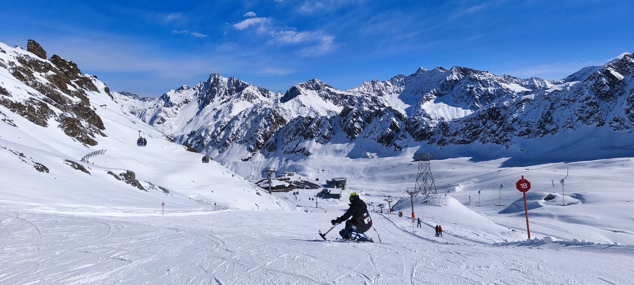 Ubytování jsme opět našli v apartmánech Haus Renate v obci Vergötschen. Tento penzion nabízí dostatek bezbariérových pokojů. Na svah se sice musí dojíždět po vysokohorské silnici, což zabere zhruba 35 minut, ale díky nádherným výhledům na alpské vrcholky cesta vždy rychle uteče. Po příjezdu do areálu je navíc hned znát, že se zde s handicapovanými lyžaři opravdu počítá. Vyhrazené parkování přímo u nástupu na lanovky je velkým komfortem i pomocí.