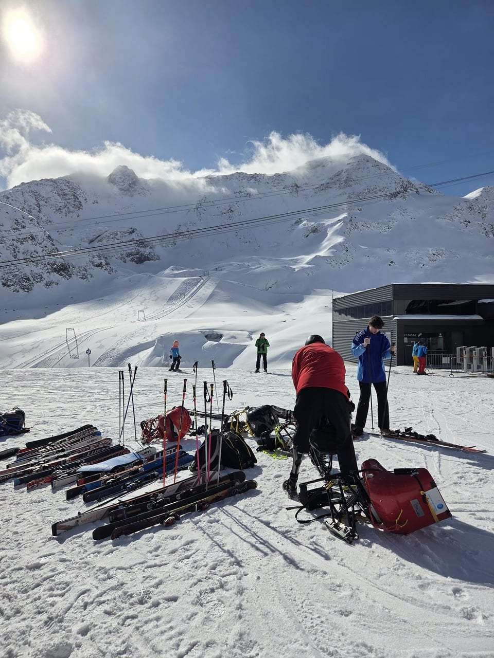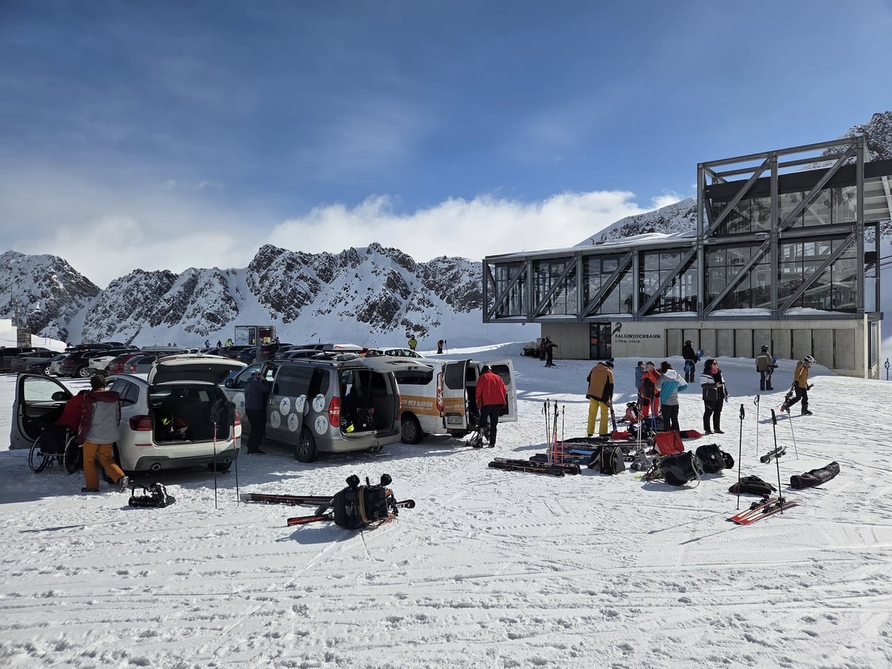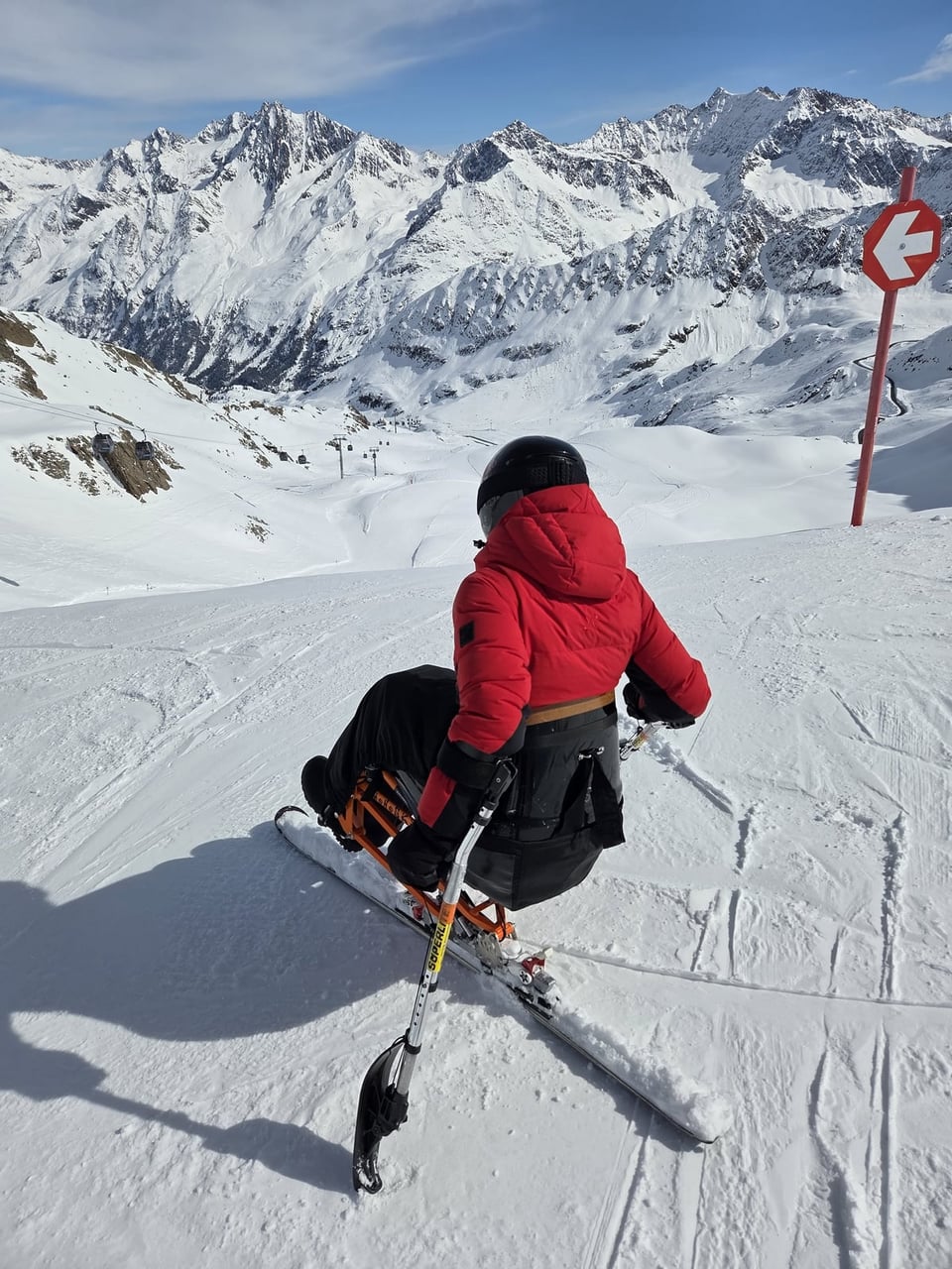 Ubytování jsme opět našli v apartmánech Haus Renate v obci Vergötschen. Tento penzion nabízí dostatek bezbariérových pokojů. Na svah se sice musí dojíždět po vysokohorské silnici, což zabere zhruba 35 minut, ale díky nádherným výhledům na alpské vrcholky cesta vždy rychle uteče. Po příjezdu do areálu je navíc hned znát, že se zde s handicapovanými lyžaři opravdu počítá. Vyhrazené parkování přímo u nástupu na lanovky je velkým komfortem i pomocí.